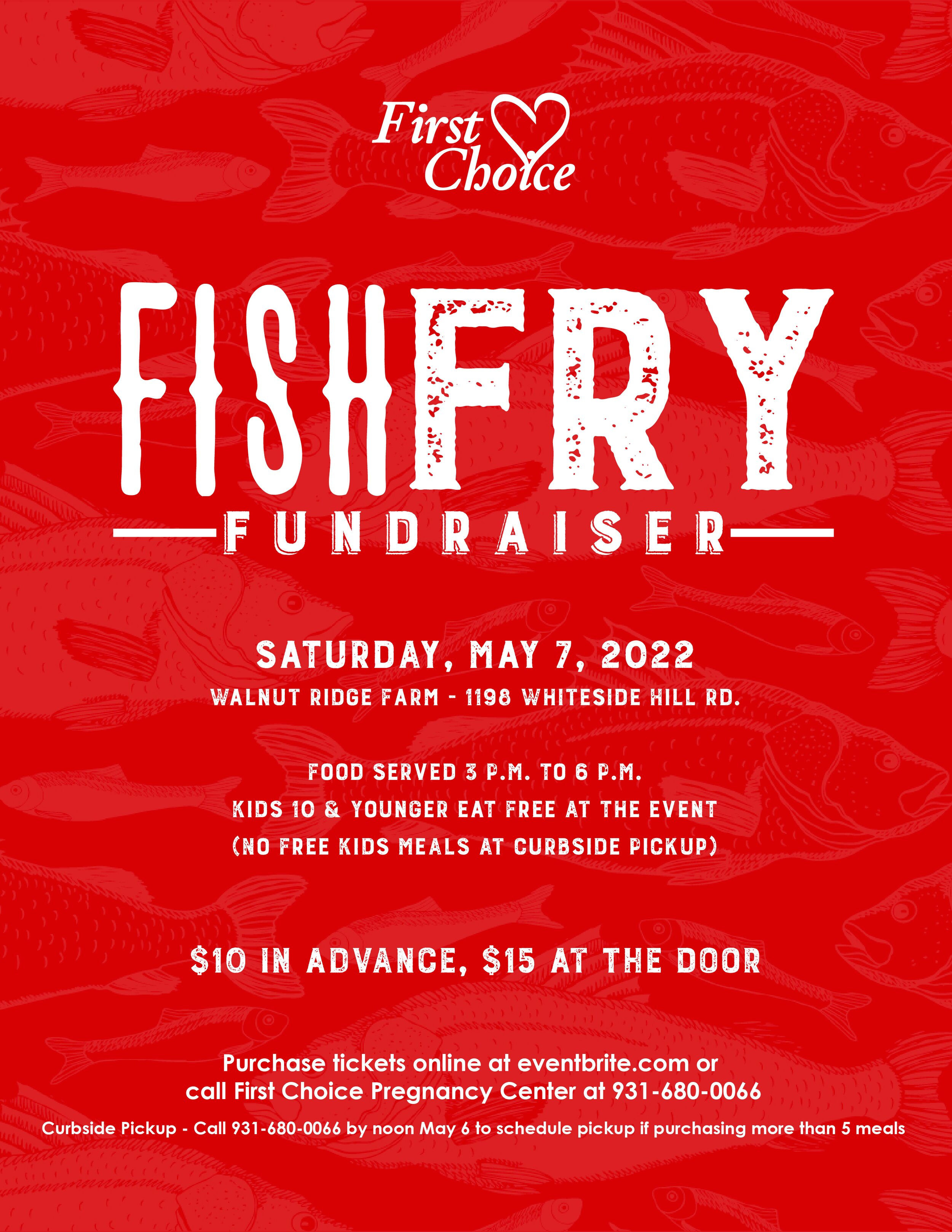 First Choice Fish Fry Saturday, May 7, 2022 3:00 PM 6:00 PM 15:00 18:00 Walnut Ridge Farm 1198 Whiteside Hill Rd. Wartrace, TN United States (map) Google Calendar ICS Buy your tickets online here.